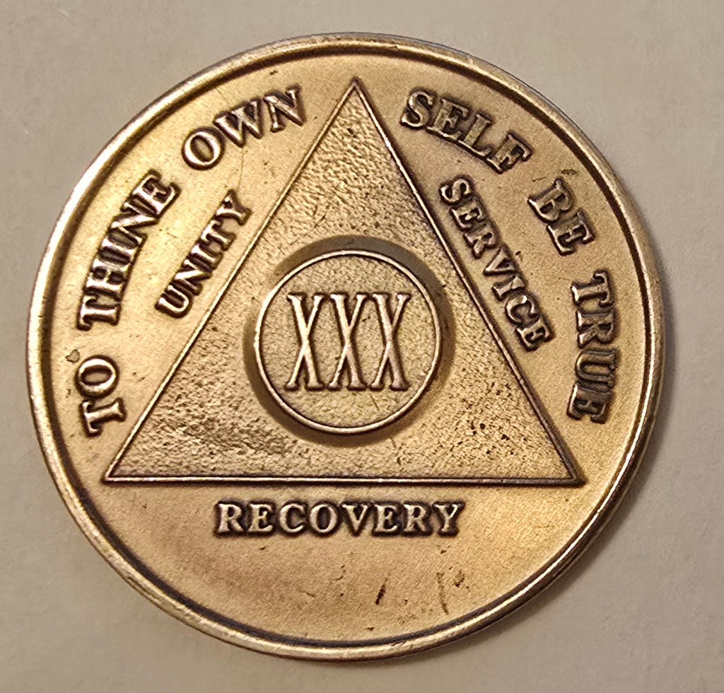 This is my medallion I picked up last November, 2024 for being clean & sober for 30 years: