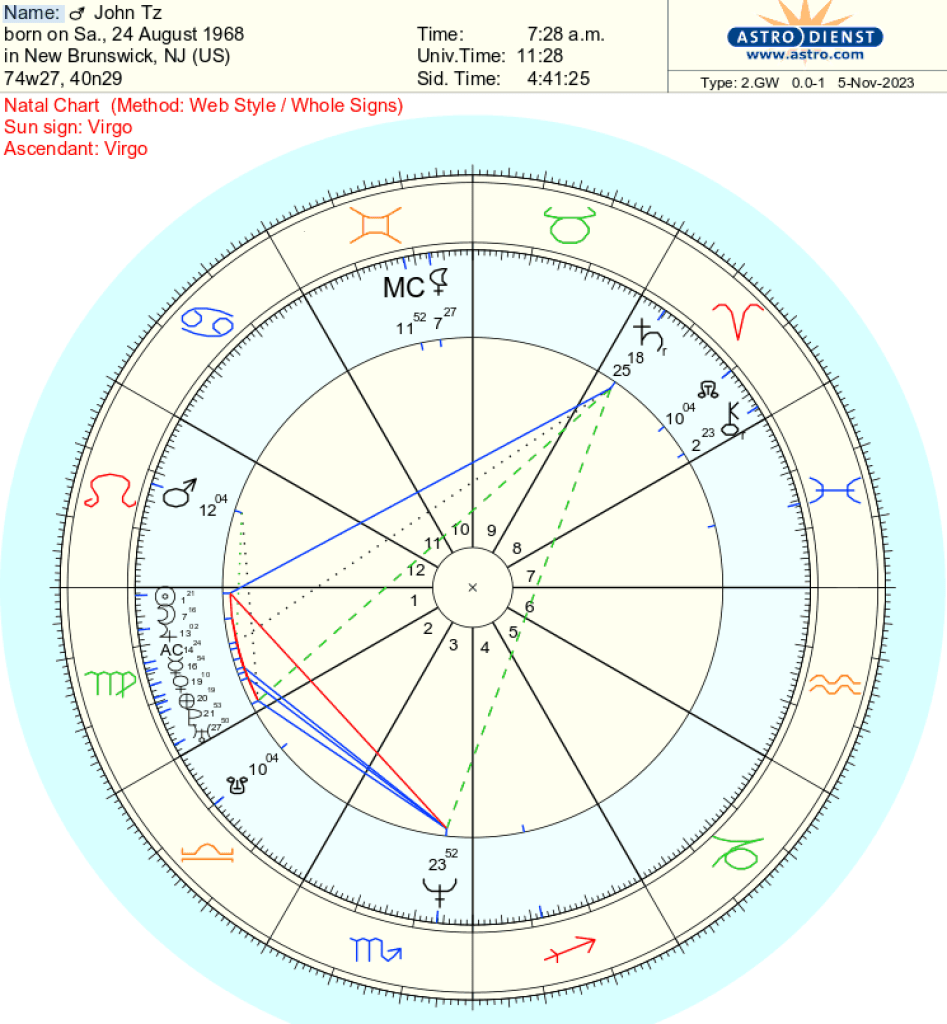 Years before I met my ex wife, my mom told me I was born at 11:30am in the morning. I put this in a Birth chart calculator and it spit out I was a ‘Scorpio Rising‘. I read up on Scorpio Risings and after reading about stuff which didn’t make much sense to me and my disposition, I decided this Astrology thing is not for me.