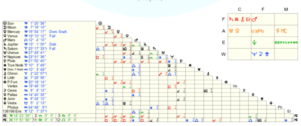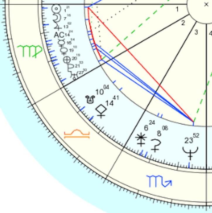 Planets can be in a different House and depending on how many houses apart they are from each other will give One’s aspects or angles. Aspects are how each planet ‘talks’ or ‘communicates’ to each other.