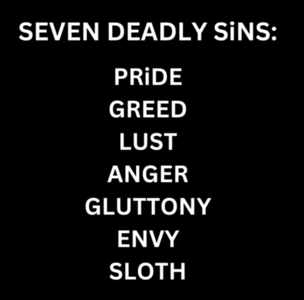 Just look up “The Seven Deadly Sins” and One can find a list of the Seven Deadly Sins: