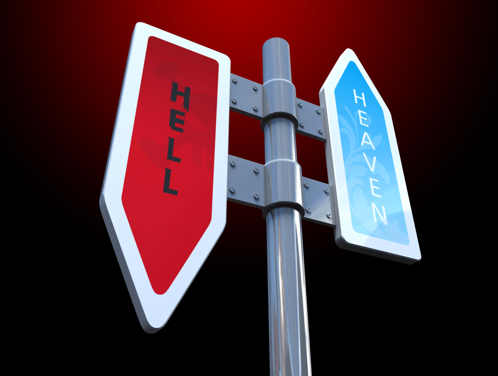 I am a Spiritual Person and my definition of Hell is “The absence of God”. Wait, -how can One be in Hell, when God is everywhere? Exactly, One puts One’s self in Hell when One’s own negligent actions invites The Darkness to take hold of One’s life.