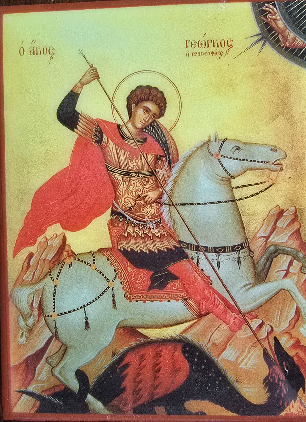 THIS ICON DEPICTS ST GEORGE PUTTING AN END TO THE DRAGON OF SIN!